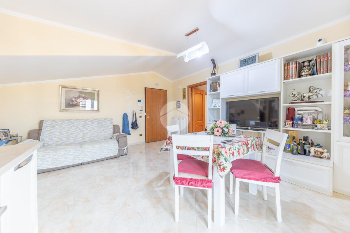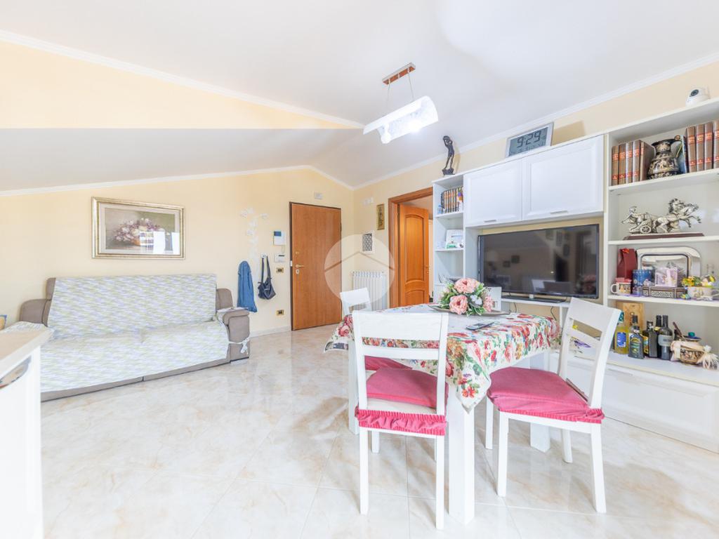Proponiamo in vendita un appartamento sito al terzo e ultimo piano di una piccola palazzina del 2013, composto da: salone con angolo cottura, due camere da letto matrimoniali, bagno con finestra, doppio ripostiglio mansardato e terrazzo semi perimetrale.