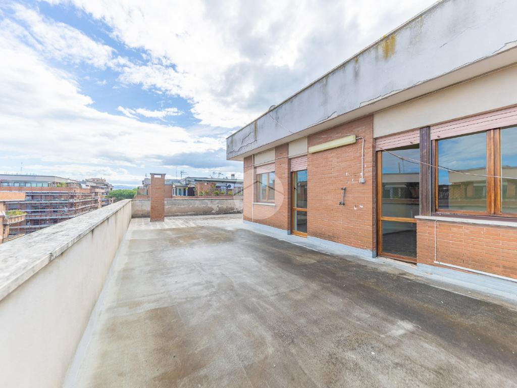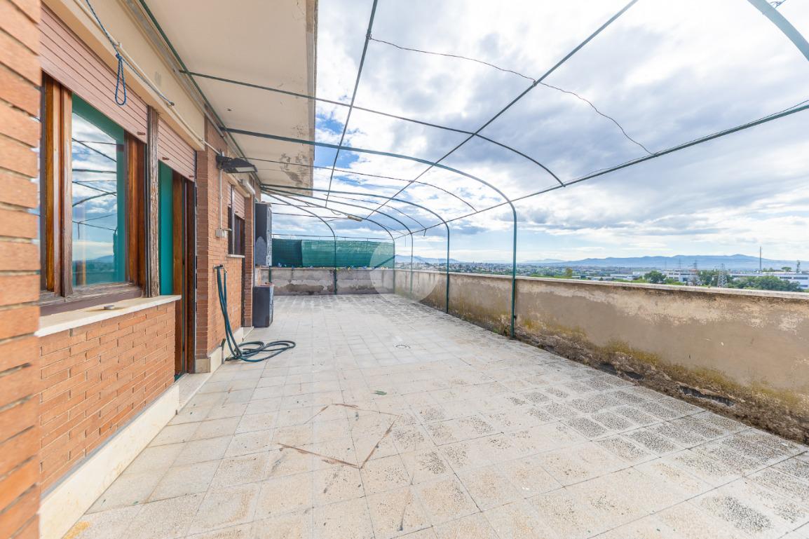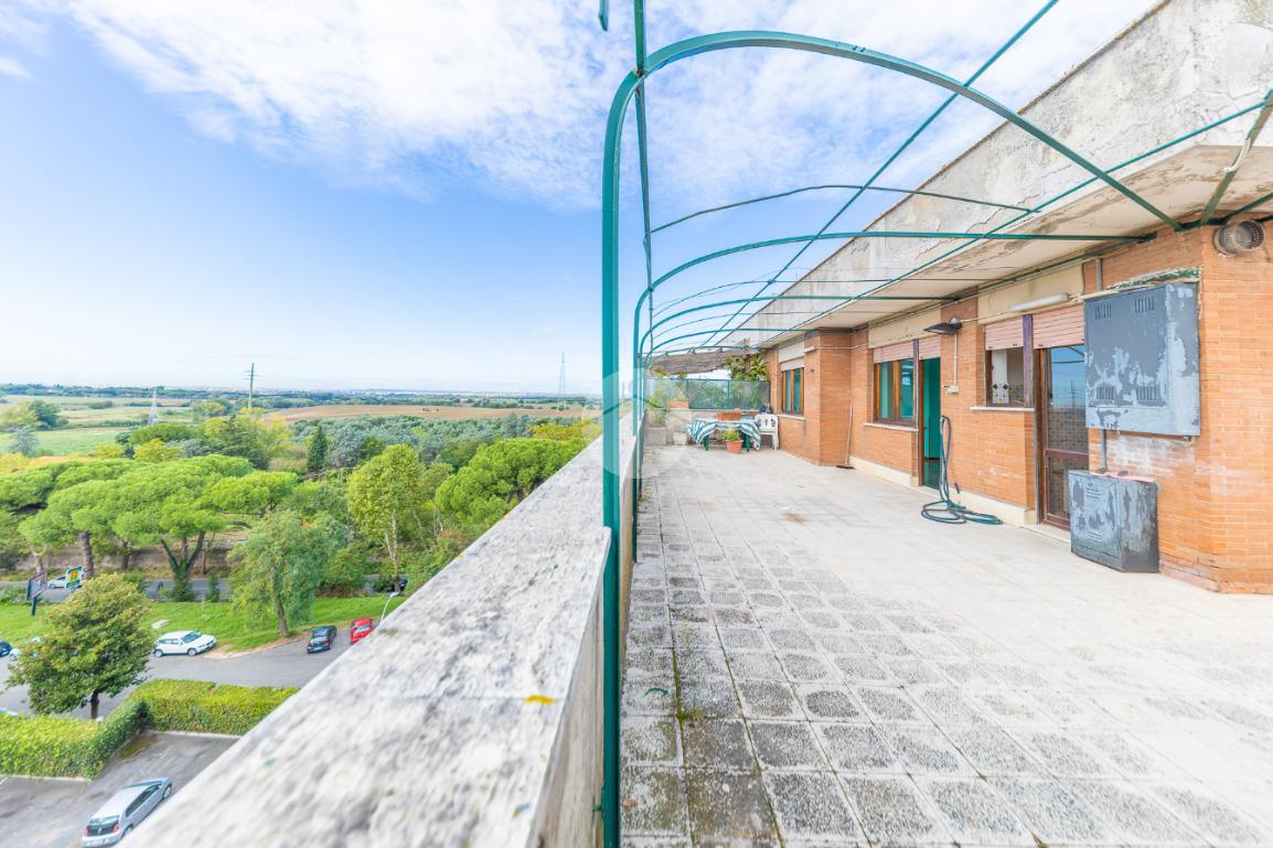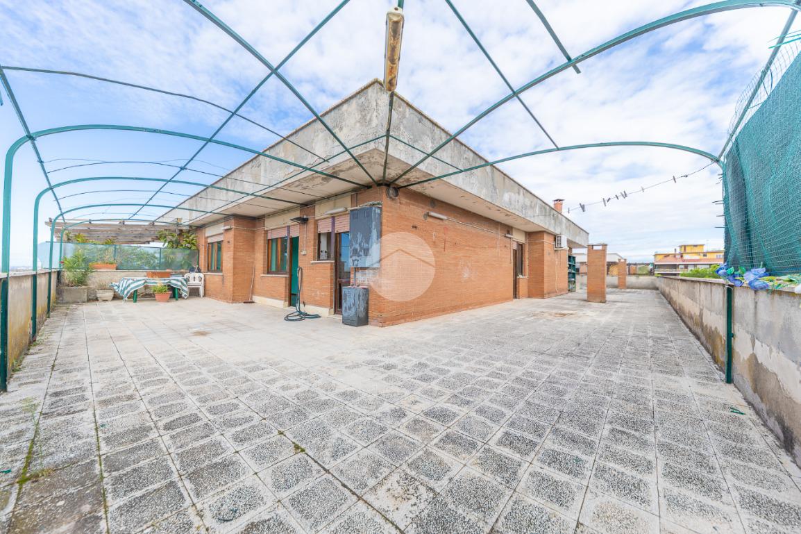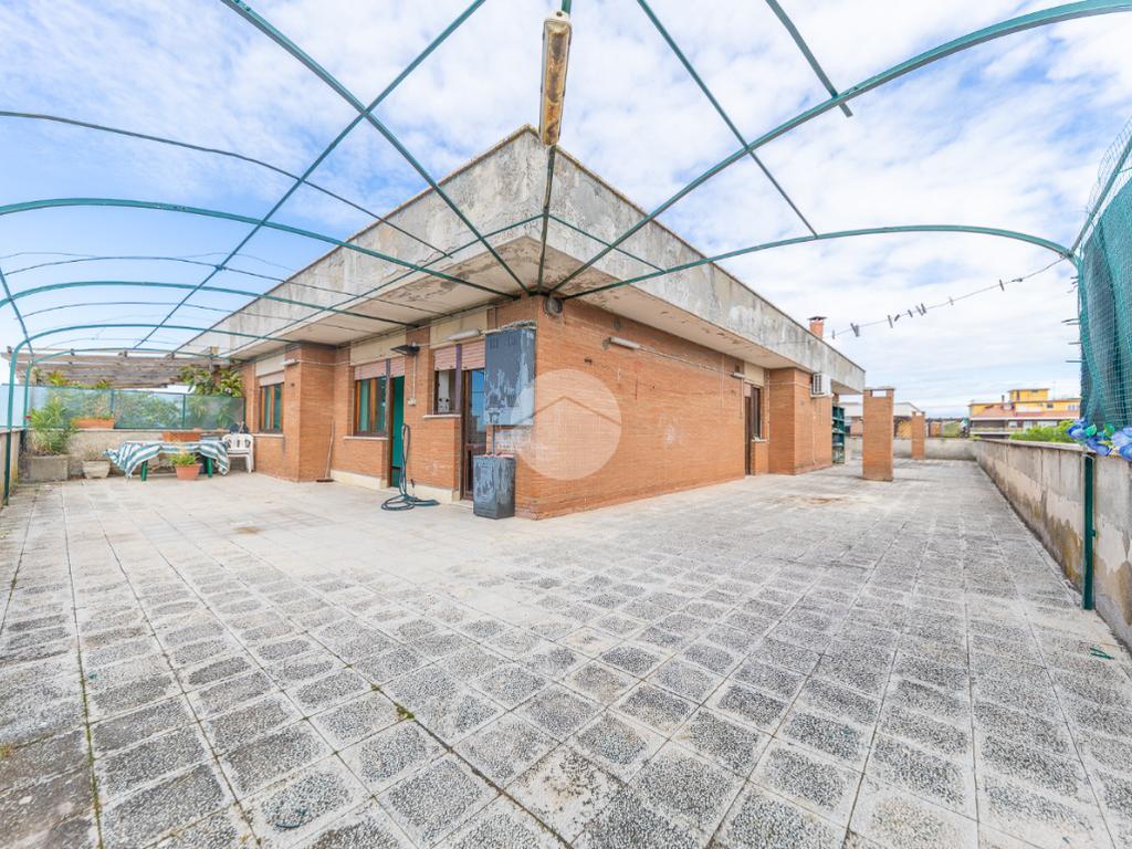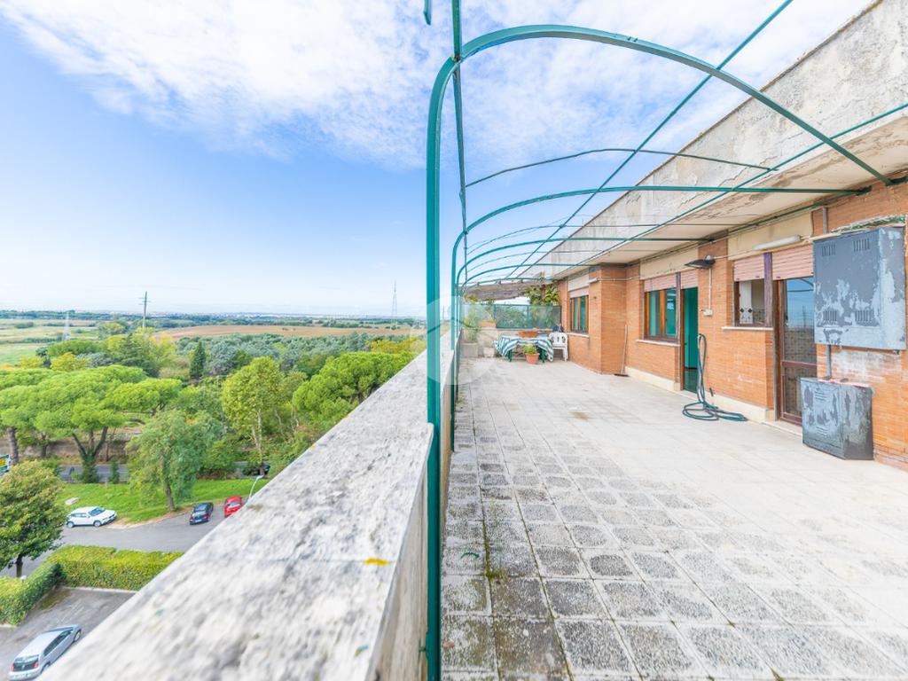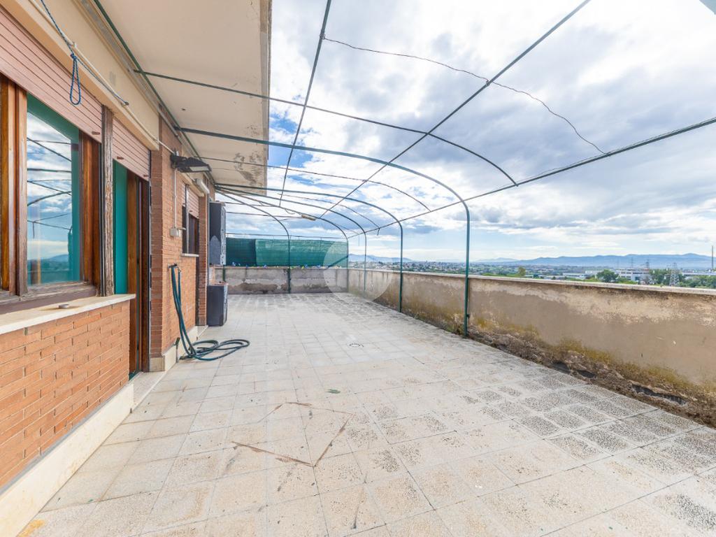 Proponiamo in vendita un attico in palazzina in cortina, composto da: ingresso, salone, cucina abitabile, ampia zona tinello con camino, due camere da letto matrimoniali, bagno finestrato con vasca, ripostiglio e terrazzo perimetrale di 180 mq con vista panoramica verso Roma.