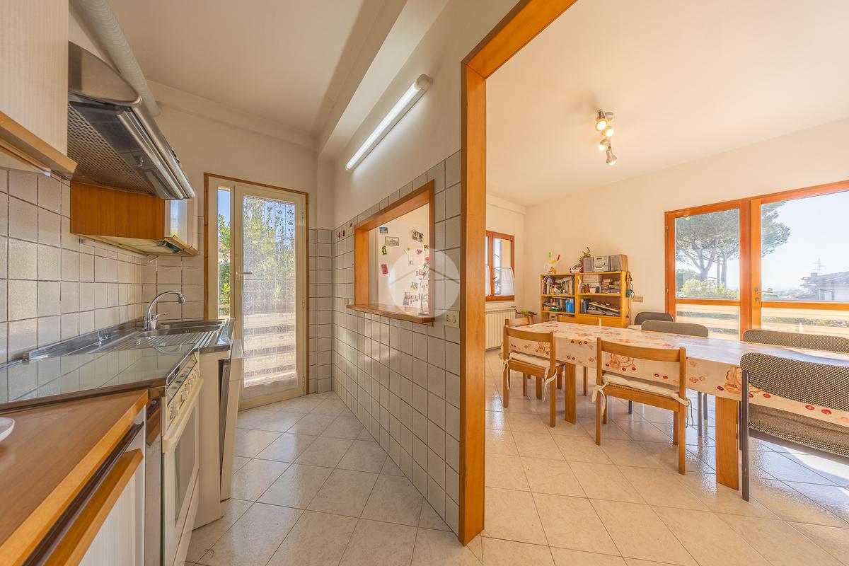 Piano terra: salone doppio con termocamino e zona tinello, cucina, quattro camere da letto, tre bagni finestrati, di cui uno con comodo antibagno, e portico perimetrale.